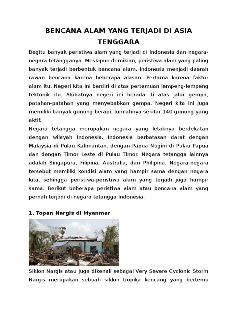 Bencana Alam Yang Terjadi Di Asia Tenggara