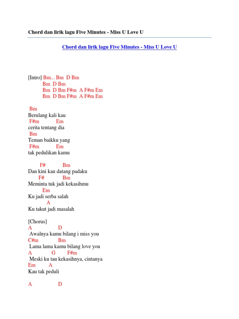 Chord Dan Lirik Lagu Five Minutes Miss U Love U By Chord Zila Issuu
