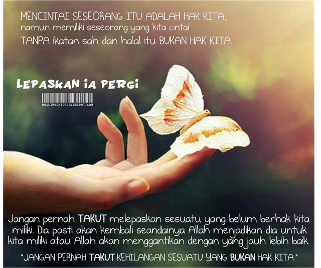 Jangan takut melepaskan orang yang kita sayang. Jangan takut untuk melepaskan seseorang. Mari kita lanjutkan prosesnya. Buat yang masih single sedang ta aruf dan berusaha menghalalkan ehh ternyata ada sesuatu yang menghalangi jalan menuju sah itu. Beragam kata gombal kita lontarkan entah itu di status pesbuk twitter ataupun pm di bbm berharap si dia yang kita maksud akan membaca dan mau mengerti dan.