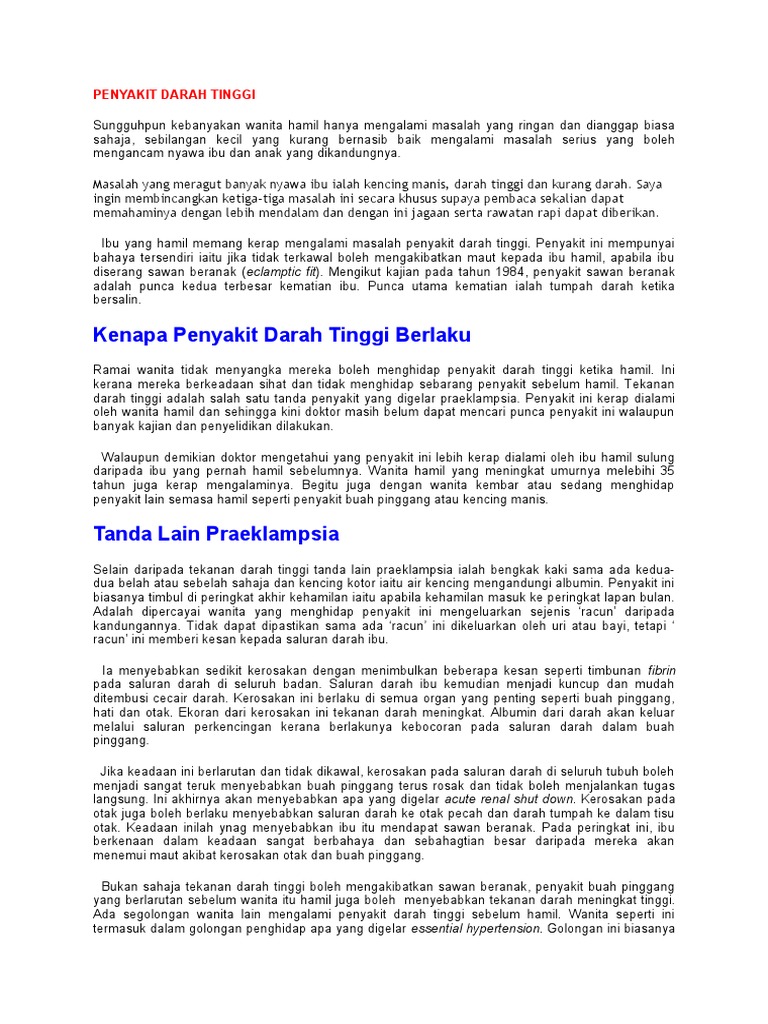 Tekanan Darah Tinggi Ketika Hamil Dr Zubaidi Hj Ahmad Menulis
