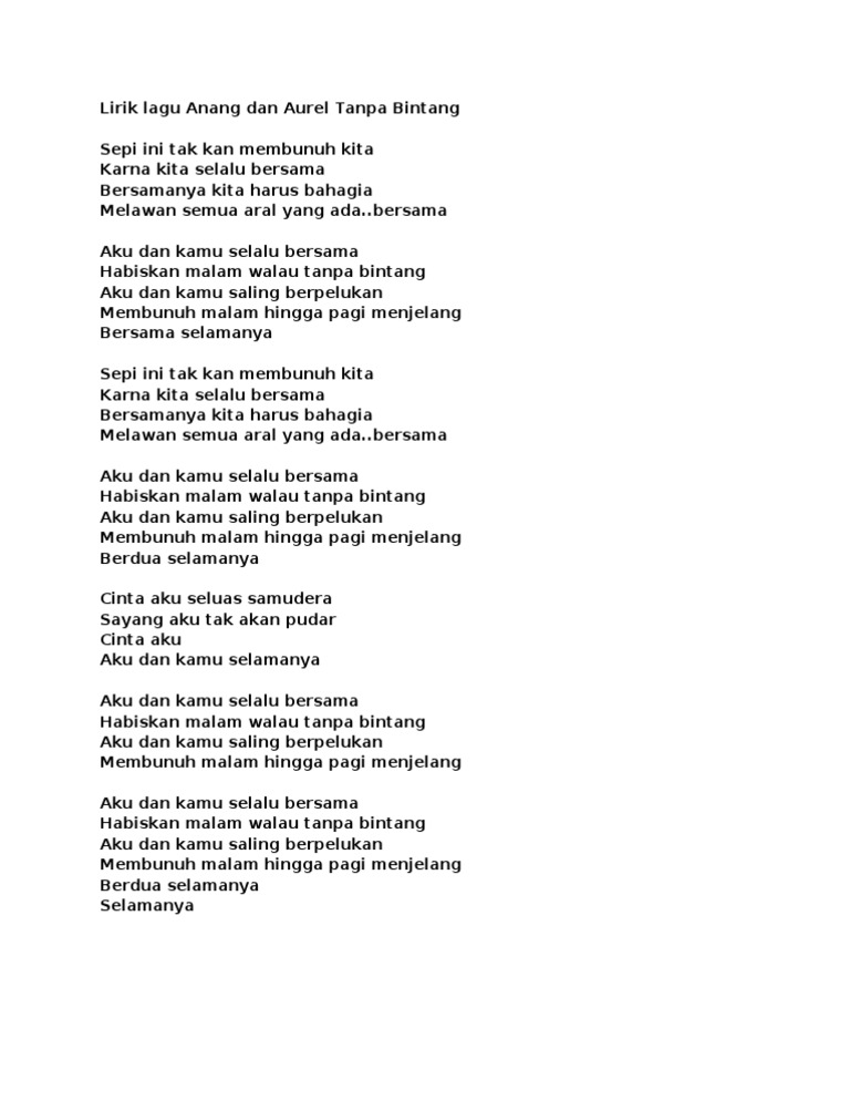 Lirik Lagu Anang Dan Aurel Tanpa Bintang