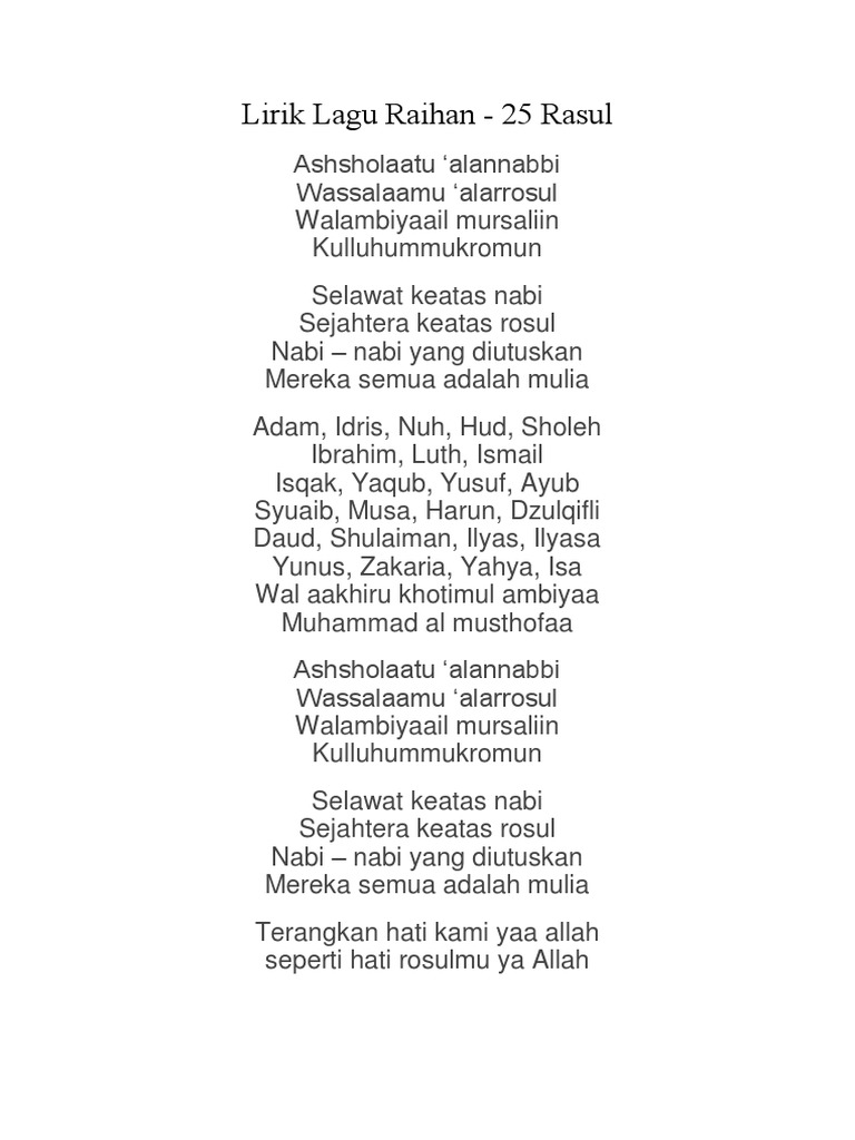 Lirik Lagu Raihan 25 Rasul