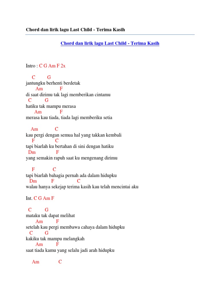 Chord Dan Lirik Lagu Last Child Terima Kasih By Chord Zila Issuu